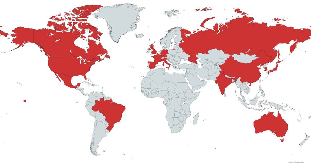 General overview of the potential primary spread of SynthoLingua by countries: